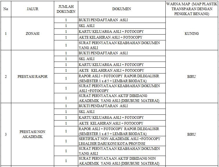 - Berkas kelengkapan masing-masing map pada setiap jalur sebagai berikut: