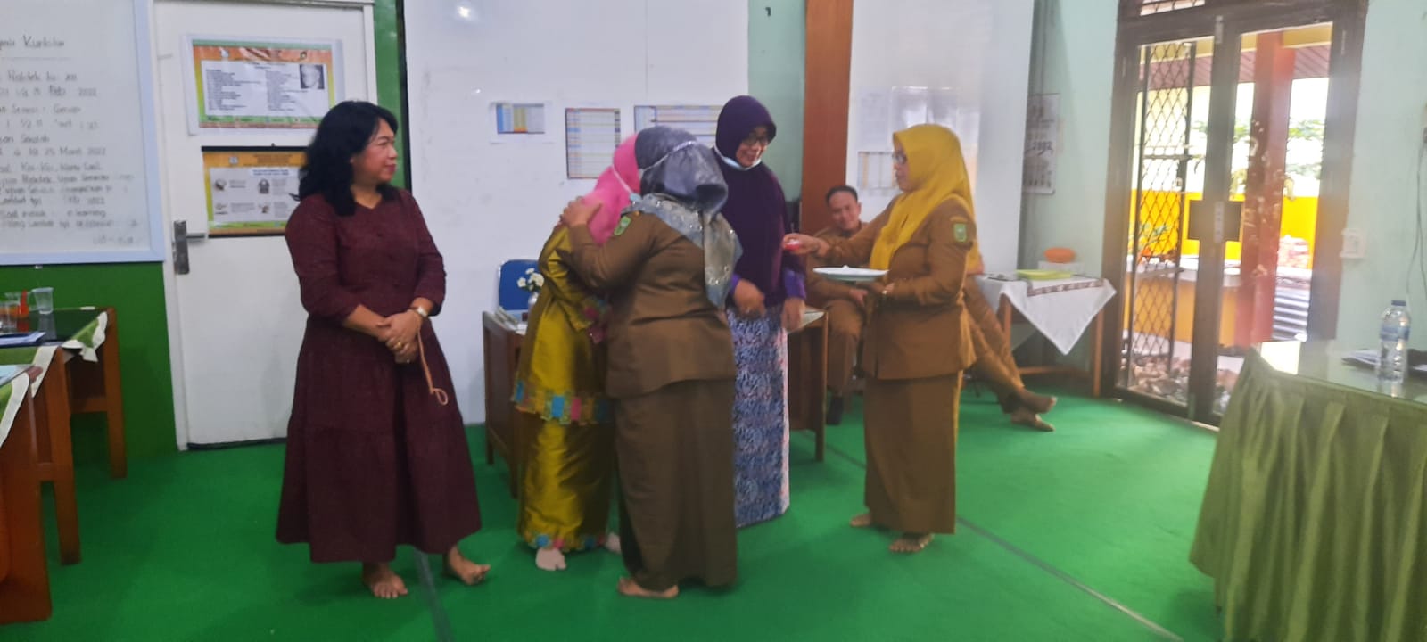 Penyerahan Cendera Mata dengan Para Guru yang Memasuki Masa Purnabakti